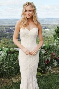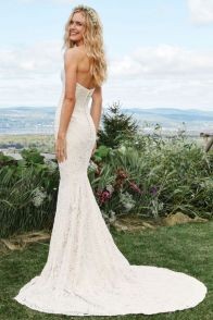 Syrenka uszyta z mięsistej koronki o niepowtarzalnym wzorze. Model ten wyróżnia niezwykle modny szew przez środek sukni.