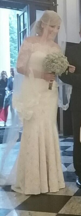 Suknia ślubna projektanta Lillian West nr 6425 – Seksowna „syrenka” uszyta z mięsistej koronki o niepowtarzalnym wzorze. Charakterystyczną cechą tego modelu jest niezwykle modny szew przez środek sukni. Kolor: champagne/ivory. Należy zaznaczyć, że suknia pochodzi z kolekcji projektanta 2017 r. Suknia jest oryginalna, czekałam na jej sprowadzenie ponad 8 miesięcy, miałam ją na sobie jedynie raz :) posiadam o niej bolerko, które nadało niesamowitego szyku oraz welon obrobiony na krawędziach śliczną koronką o długości ponad 2,7 m.