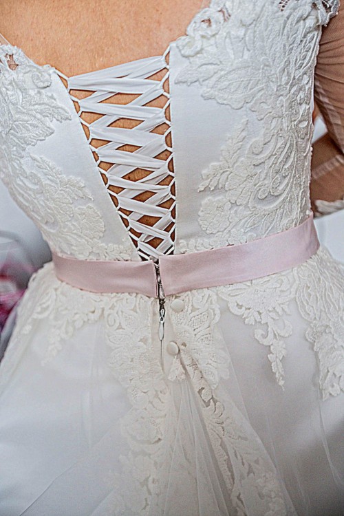 Z tyłu możliwe jest doszycie patki pod sznurowanie gorsetu, jednakże uważam, że lepiej prezentuje się bez niej. Gorset jest na tyle usztywniony, że zbędny jest biustonosz.