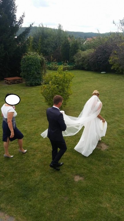 Do sukni możliwość dokupienia długiego welonu, który doskonale uzupełnia ślubną stylizację.