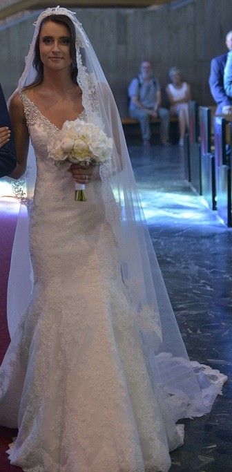 Sprzedam zjawiskową suknię ślubną Justin Alexander w rozmiarze 36/38 (wzrost 172 przy obcasie 7 cm, do samej ziemi). Suknia wykonana jest z przepięknej, świetnej jakości koronki, przód i głęboki tył wykończony jest kryształkami Swarovskiego. Kolor sukni- naturalna biel (kość słoniowa). Suknia ma wszytą halkę i wkładki, wiec nie wymaga wkładania biustonosza. Posiada długi tren, który w razie potrzeby można podpiąć. Zrobiła ogromne wrażenie na wszystkich Gościach:)