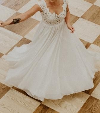 Piękna, lekka suknia ślubna z odpinanym trenem