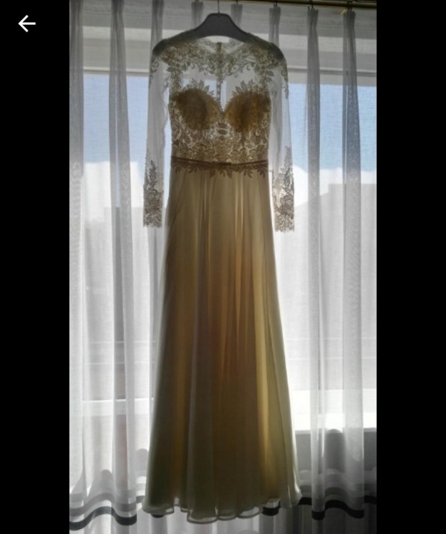 Suknia wyprana, kompletnie nie zniszczona, brak śladów użytkowania, wygląda jak nowa.