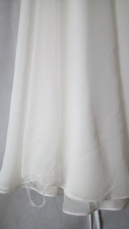 Suknia wymaga obszycia, ponieważ jest w jednym miejscu na dole uszkodzona (widoczne na zdjęciu).