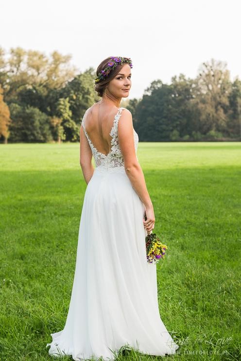 Subtelna, zwiewana, wygodna, wpisuje się w trend wesel rustykalnych.