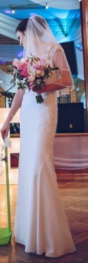 Suknia jedynie nie posiada 2 guziczków, które podczas super zabawy zginęły w tłumie, ale każda dobra krawcowa takie guziki przyszyje :)