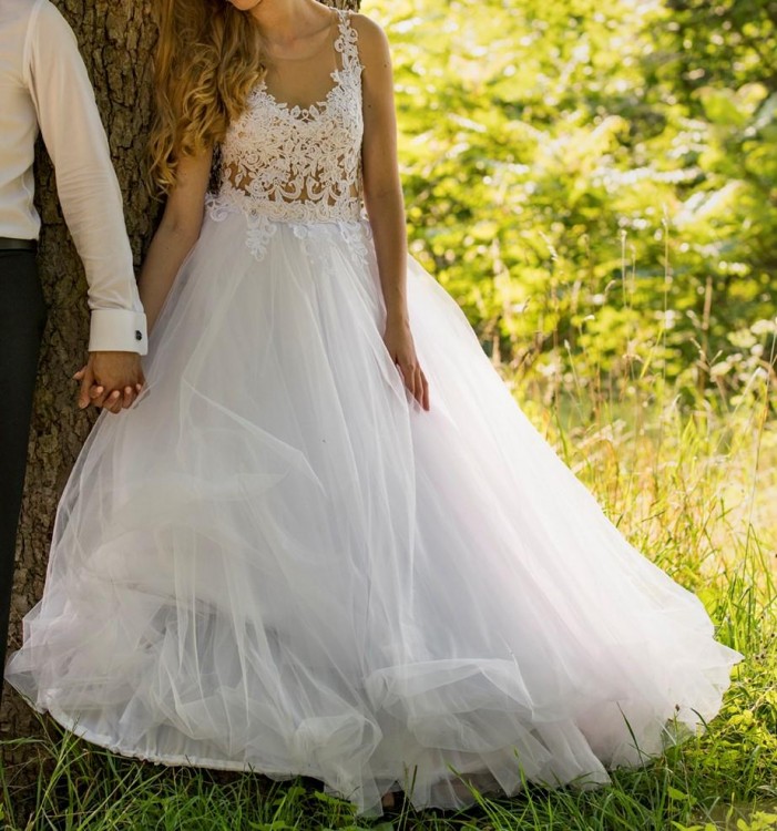 Sprzedam piękną śnieżnobiałą suknie ślubną stworzoną na zamówienie :) Suknia stworzona dla kobiety o wzroście 170 + 6 cm szpilki o rozmiarze 34 z małym biustem. Chętnych zapraszam do kontaktu bezpośredniego, mogę wtedy wysłać więcej zdjęć, odpowiedzieć na nurtujące pytania, albo ustalić odpowiedni dla obu stron termin przymiarki sukni. Suknia bardzo wygodna, serdecznie polecam :)