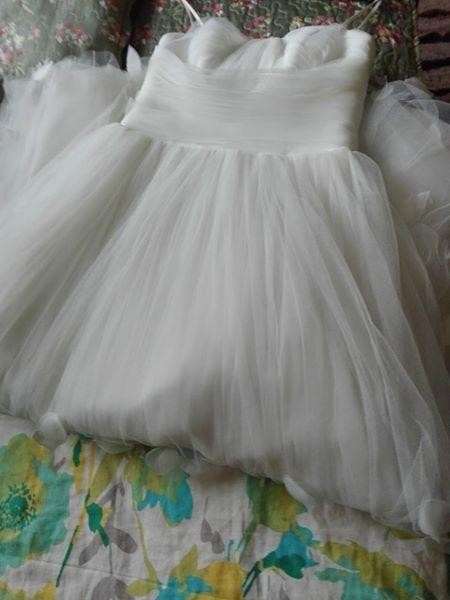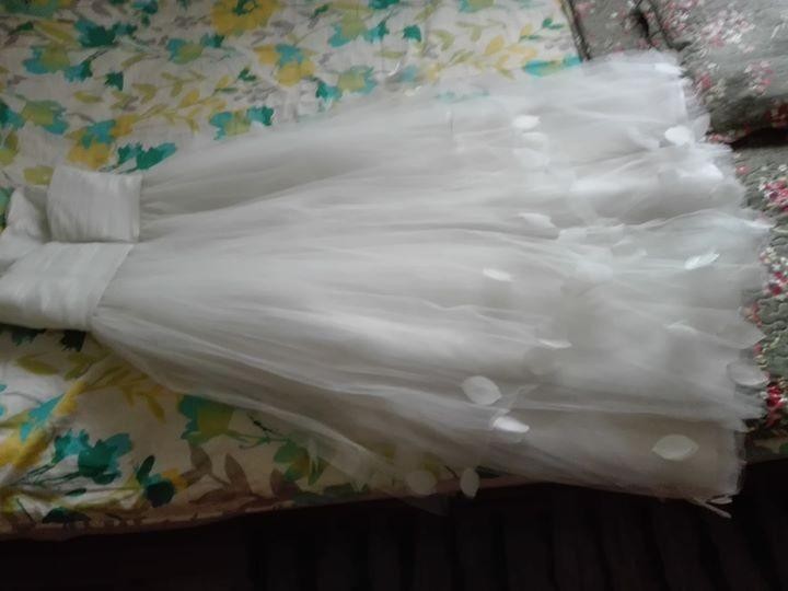 sukienka midi na wyzsza osobe, długa na niższą. Założona raz na poprawiny .Zakupiona w salonie sukien ślubnych. Piękna , lekka i bardzo wygodna.