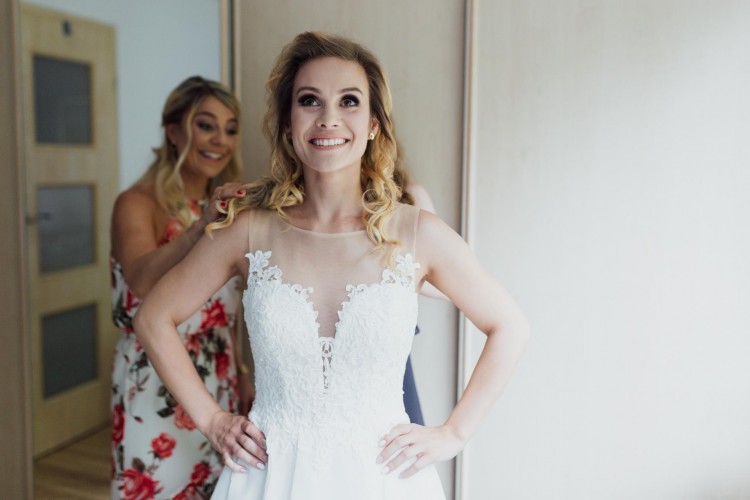 Sprzedam piękną suknię ślubną Lilian West z kolekcji 2017 w rozmiarze 36, suknia została zakupiona w salonie Anna w Katowicach. Bez wątpienia jest to idealna sukienka dla przyszłej Panny Młodej, która chce się poczuć wyjątkowo, z wdziękiem, ale także lekko i wygodnie. Sukienka z dekoltem V i odkrytymi plecami, na przezroczystej siateczce - dzięki temu nie zsuwa się, nie opada i jest bardzo wygoda w tańcu. Sukienka ma wbudowany gorset. Z tyłu zapinana na zmysłowe guziczki, wykończona koronką. Dół sukni składa się z nieregularnych, szyfonowych warstw. Ukośne falbany pięknie wyglądają w tańcu. Do sukni dołączam szyty na miarę welon z koronką. Długość welonu 185 cm.