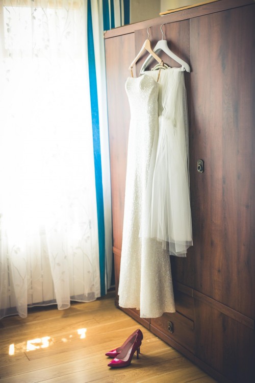 Suknia od producenta Gala, model Hiro, ale ze specjalnie przedłużonym trenem, co widać na jednym ze zdjęć (z możliwością wygodnego podpięcia). Jest w rozmiarze 36, ale dzięki regulacji można dopasować do sylwetki. Opina figurę, ale jest bardzo wygodna i lekka, z lejącego materiału w szlachetnym kolorze kości słoniowej. Kupiona w salonie Madonna przy ul. Marszałkowskiej w Warszawie. Tylko z pozoru jest prosta. Na żywo wygląda oszałamiająco - cała mieni się cekinami, pięknie opina sylwetkę podkreślając kobiece kształty i przede wszystkim nie zdominuje Panny Młodej, a rozświetli blaskiem i podkreśli urodę. Dzięki temu, że nie jest zdobiona żadnymi falbankami czy kokardami - można dobrać ciekawe, odważne dodatki (ja miałam buty w kolorze fuksji, które świetnie dopełniły stylizację). W cenie jest długi welon (również w kolorze kości słoniowej) mam też krótki - mogę dołożyć do zestawu. Założona tylko 2 razy: na ślub i sesję zdjęciową. Sprawdzi się dla stylowej Panny Młodej, organizującej ślub w stylu glamour. W razie potrzeby odpowiem telefonicznie na wszystkie pytania. Zapraszam do kontaktu i przymiarek, Ewelina.