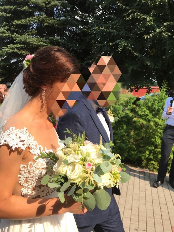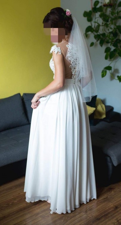 Witam! Mam do sprzedania suknię ślubną zakupioną w salonie sukien ślubnych w Kielcach. Suknia szyta na miarę, rozmiar 36/38, wzrost 178+7cm obcas. Kolor ivory. Góra koronkowa na cielistej siateczce, dół muślinowy. Stan idealny, wyprana w profesjonalnej pralni chemicznej. Mega wygodna! Cena do negocjacji. Zapraszam do kontaktu po więcej informacji.