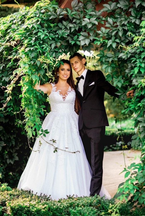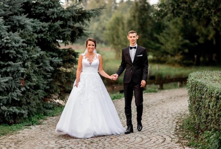 Suknia bardzo wygodna oraz swobodna, nie wymagała poprawiania podczas noszenia, ładnie się układa, jest elegancka. Do sukni jest również dołączona halka z wbudowanym kołem.