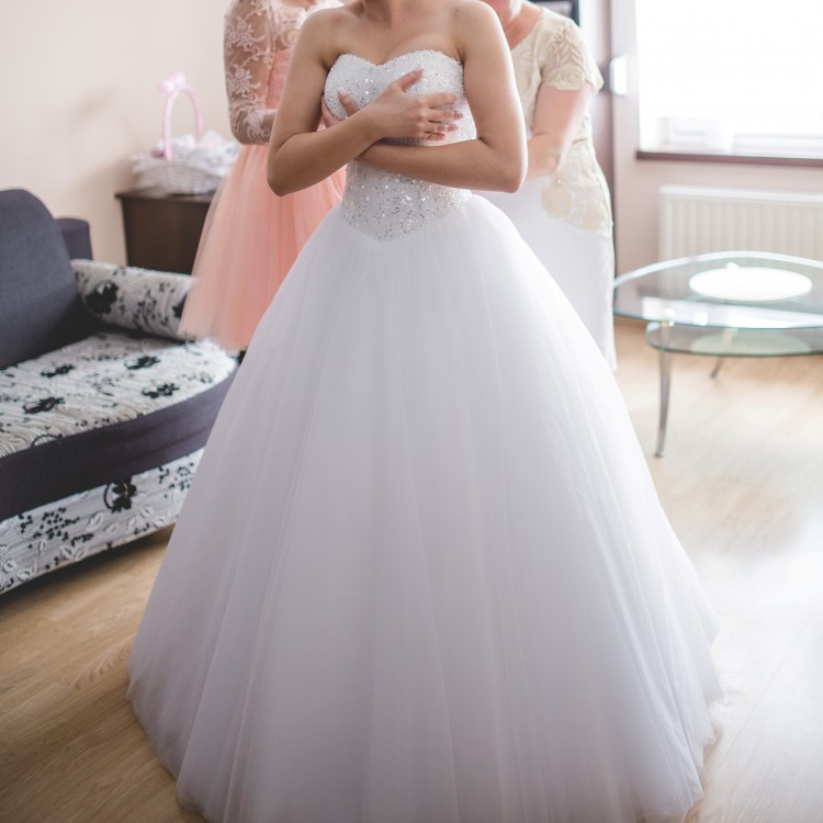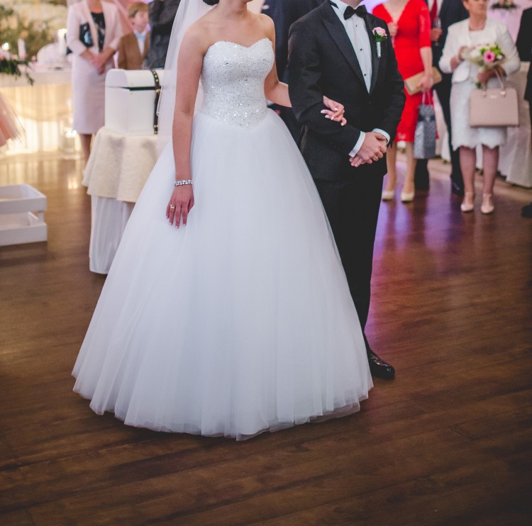 Sprzedam piękną sukienkę ślubną typu princess, szytą na miarę w salonie w Koninie.