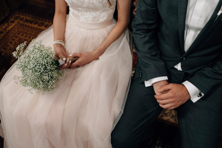 Suknia posiada krótki tren, który można podpiąć.