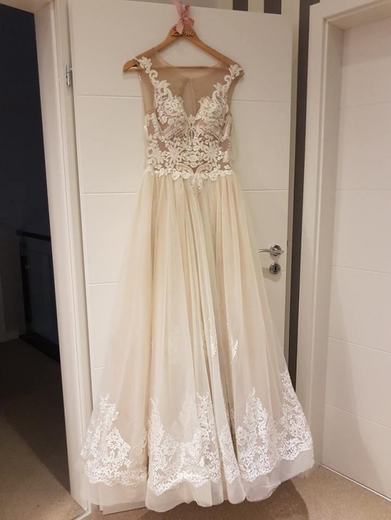 ROZMIAR 38, DŁUGOŚĆ 180 CM - jestem wysoka dlatego każda niższa Panna Młoda będzie mogła idealnie dopasować ją do siebie:)
