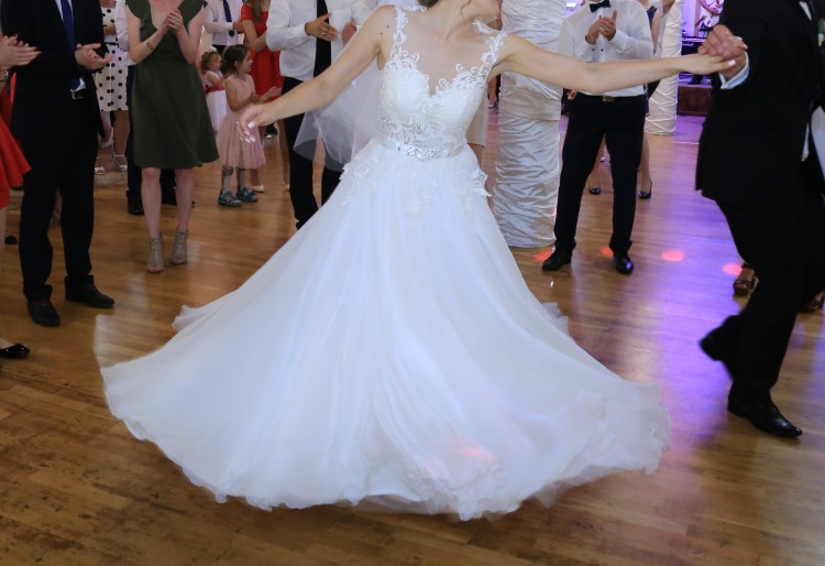 Suknia na żywo jest piękna, zebrała komplementy wielu gości. Jest bardzo lekka i wygodna a przy tym pięknie się układa w tańcu.