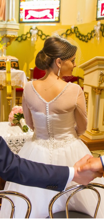 Sprzedam piękną i lekką suknię ślubną Bogna z kolekcji Świtezianka, zakupioną w salonie Fasson Doroty Wróbel w Paniówkach. Suknia jest bardzo wygodna, w talii odcięta eleganckim pasem z kryształków. Dzięki wiązanemu gorsetowi idealnie dopasowuje się do sylwetki. Posiada cienkie ramiączka, które w razie potrzeby można założyć (nieużywane pozostają niewidoczne). Do sukni posiadam tiulowe bolerko wykończone kryształkami z efektownym wycięciem na plecach w kształcie litery V. Istnieje możliwość dopasowania sukni do siebie w salonie Fasson w Paniówkach.