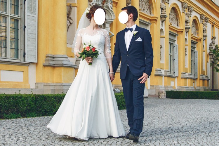 Suknia w stanie idealnym, bez żadnych uszkodzeń, założona 2 razy (ślub i sesja).