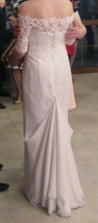 Prześliczna subtelna suknia która fantastycznie podkreśla kobiece kształty. Jest w stanie idealnym, przechowywana w oryginalnym pokrowcu, wyprana i wyprasowana. Model ten jest bardzo wygodny. Zwiewna i lekka, nie krępuje ruchów (idealna do tańca).