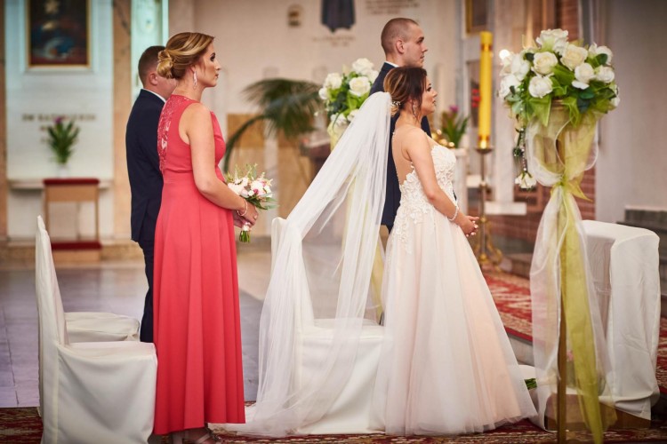 Sprzedam przepiękną suknię ślubną w kolorze pudrowego różu w rozmiarze 38.