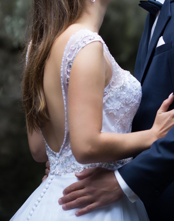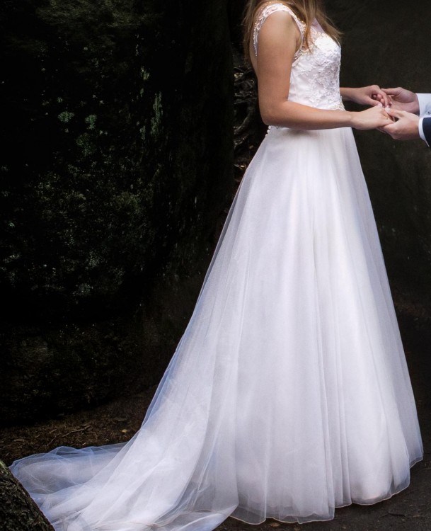 - rozmiar: 36/38(możliwość dopasowania sukni do sylwetki)
