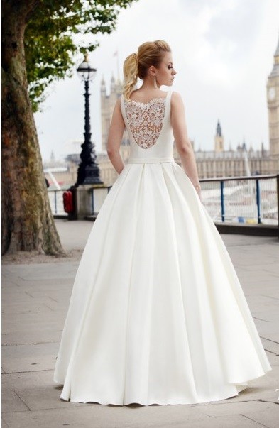 Piękna, wygodna suknia TRANSE z kolekcji 2016, wykonana z satyny mikodo, na plecach jest delikatna bawełniana koronka. Polecam!
