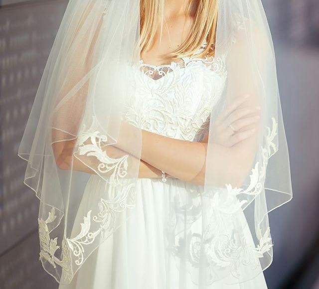 Piękna suknia ślubna rozmiar 36 szyta na wzrost 170 plus obcas 6-7 cm. Muślinowy dół bez zdobień co umożliwia dopasowanie do mniejszej długość. Góra z hiszpańskiej gipiury, którą również wykończony jest welon. Tył wiązany i regulowany ,wykończony pięknym zapięciem z koralików. Wszyty biustonosz. Kolor ecru/ śmietankowa biel. Do sukni dołączę welon oraz halkę. Więcej zdjęć poprzez prywatny kontakt. Cena do lekkiej negocjacji.