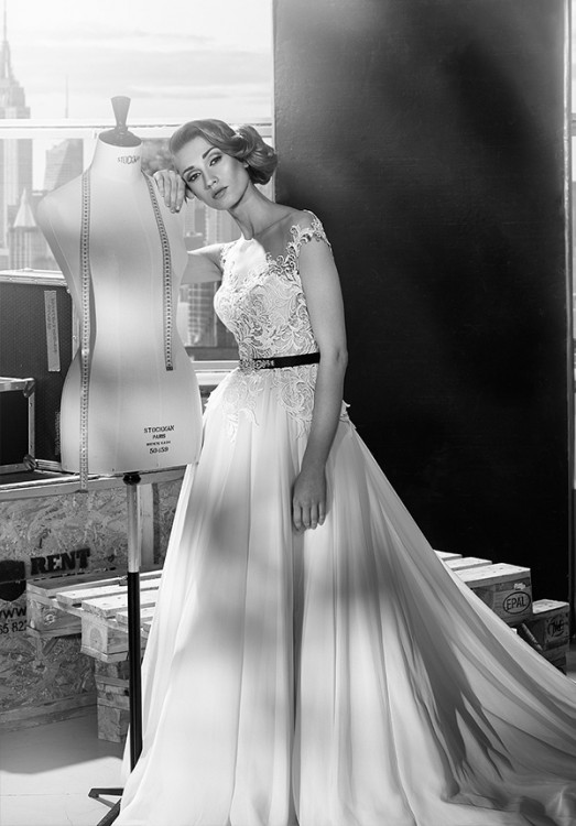 Piękna suknia ślubna z kolekcji 2016 - Gala - Machiko w kolorze białym, z cudownym trenem. Do sukni dodaje długi do samej ziemi welon obszyty gipiurką - całość prezentuje się zjawiskowo!