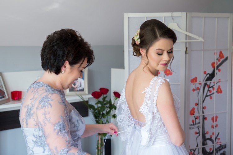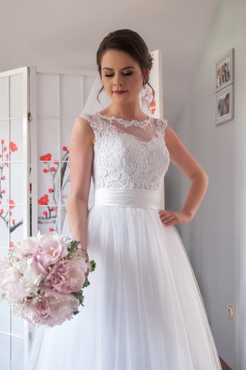 Biała suknia zakupiona w salonie Hermago Tarnów. Cena salonowa 2600 zł, model 2017 rok.