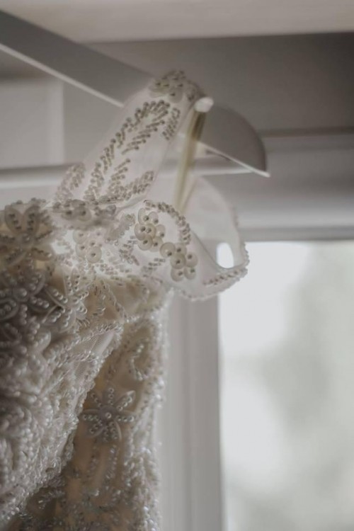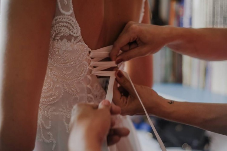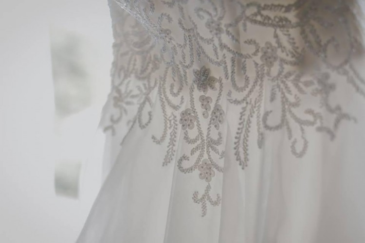 Suknia ma wszyty biustonosz 75B, by nie martwić się o wystające jego części z tyłu sukni, jednak bez problemu można się go pozbyć lub wymienić na inny.