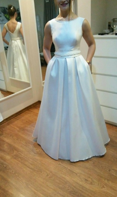 -suknia szyta według własnego projektu z białego materiału mikado