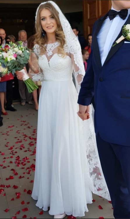 Całość wygląda naprawdę bardzo elegancko i zwiewnie. Zapewniam, że każda panna młoda będzie wyjątkowo czuła się w takiej sukni.