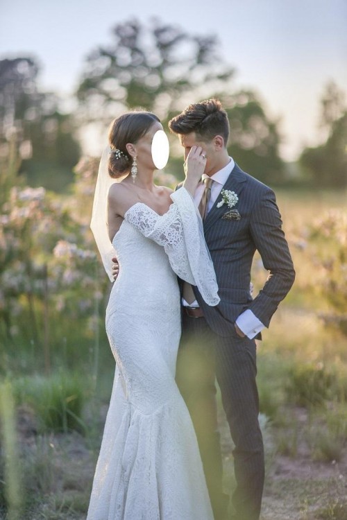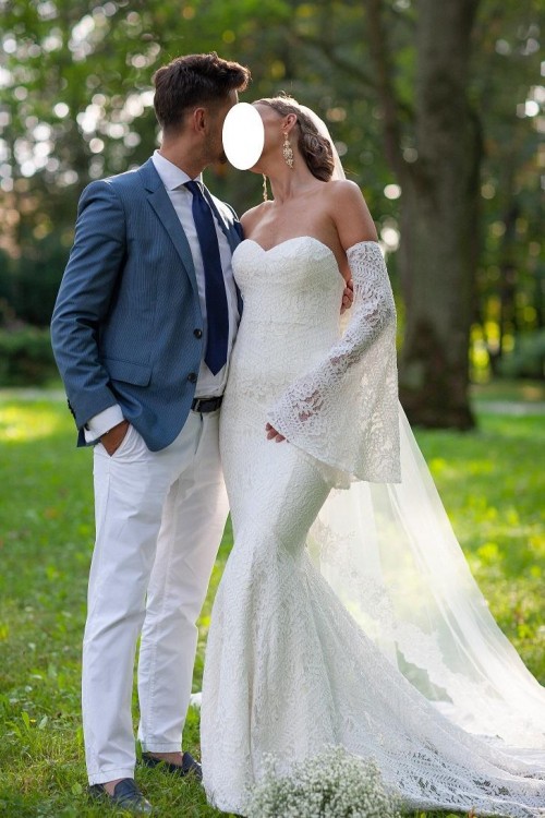 Dodatkowo zamawiane były rękawy (zapinane na kryjący suwak), szyte z tej samej koronki, które dodają wdzięku i elegancji. Dzięki czemu z prostej sukni w stylu Boho, zmienia się w elegacką suknie w stylu Glamour.