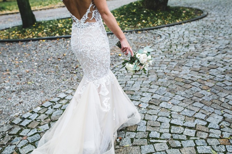 Niepowtarzalna i nowoczesna suknia ślubna MillaNova, model Olivia. Założona raz w dniu ślubu :) Całkowita długość sukienki to 150 cm + tren i 12 cm szpilki. Kolor Ivory (jak na zdjęciu).