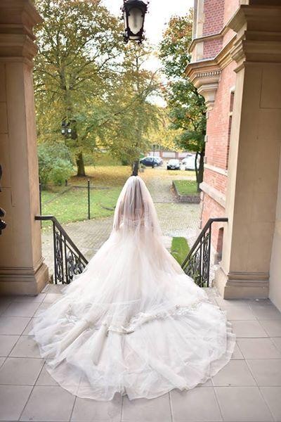 Wartość sukni w salonie w którym kupowałam suknię to 10 000 zł, ja sprzedam po kosztach za 2599 zł dodatkowo w gratisie do sukni oddam odpinany tren oraz dwa welony,mały i katedralny.Proszę pisać wiadomości prywatne na wszystkie odpowiem,cena do negocjacji.
