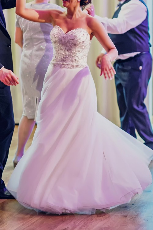 mam do sprzedania przepiękną suknię ślubną znanej firmy Justin Alexander model 8836, rozmiar 36, zwężana do 34, kolor ivory. Jest to absolutnie wyjątkowa suknia. Ujęła mnie swoim krojem i perfekcyjnie dopasowanym gorsetem. Gorset bogato wysadzany kryształami przepięknie mieni się w świetle i wygląda zjawiskowo. Jest idealnie wyprofilowany dzięki czemu nie ma efektu "wylewania" się ciała, czy też opadania sukni. Suknia ma kształt litery "A", czułam się w niej całą noc lekko i swobodnie. Jest wykonana z wyjątkowego tiulu, który pięknie się układa i nie haczy się podczas tańca. Suknia jest zapinana na guziczki, suwak oraz haftki. Zapięcie nie przeszkadza ani nie uwiera, gdyż jest zabezpieczone. Suknię zakupiłam pod koniec roku 2016 i miałam ubraną na ślubie w kwietniu oraz sesji zdjęciowej w maju br. Suknia była czyszczona w pralni, jej stan oceniam na idealny.