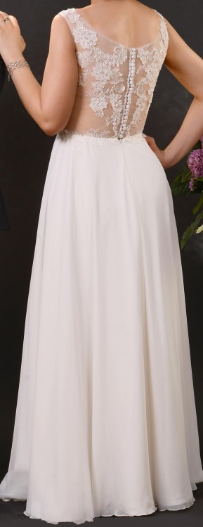 mam do sprzedania przepiękną suknię ślubną marki Mariertta Italia Illusion. Kolor Ivory. Suknia wyszywana na przodzie i na plecach, z delikatnymi kryształkami, w szczególności plecy sukni robią niesamowite wrażenie.