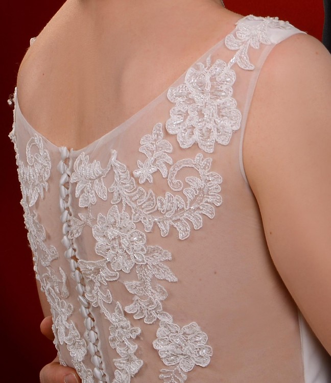 Suknia wyszywana na przodzie i na plecach, z delikatnymi kryształkami, w szczególności plecy sukni robią niesamowite wrażenie