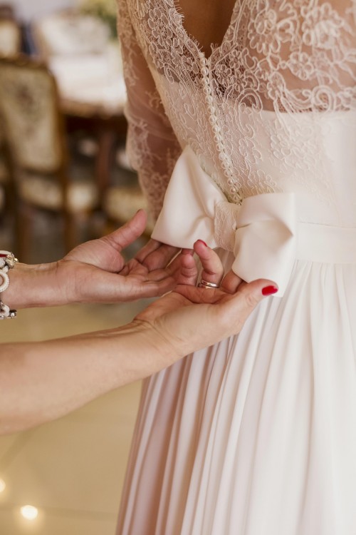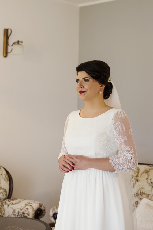 Przepiękna suknia ślubna zaprojektowana w poznańskim salonie, z włoską koronką! Kolor Ivory.