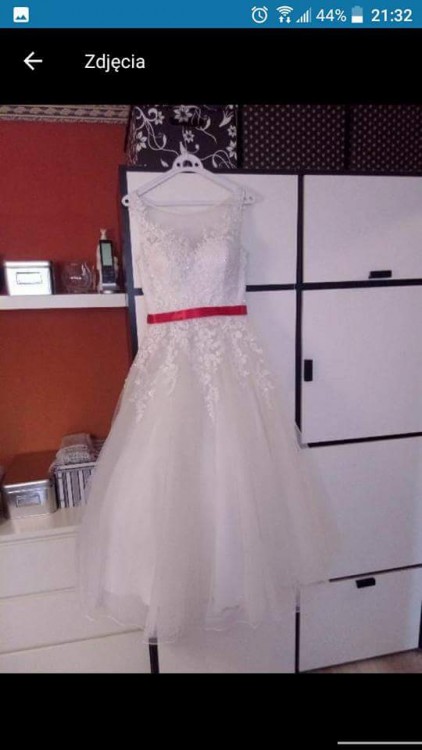 Suknia niezniszczona, wyczyszczona, posiada wszyty stanik, ale można go również odczepić. Wstążka nie jest na stałe przymocowana, więc również można zdjąć. Bardzo wygodna, dekolt łódka ładnie się układa, możliwość poszerzenia bez problemów, jak również można suknię zmniejszyć. Więcej zdjęć mogę podesłać prywatnie . Wspaniale się "kręci" co daje piękny efekt na kamerze lub zdjęciach. Możliwość obejrzenia w Rogoźnie, jak i w Obornikach. Cena do negocjacji.