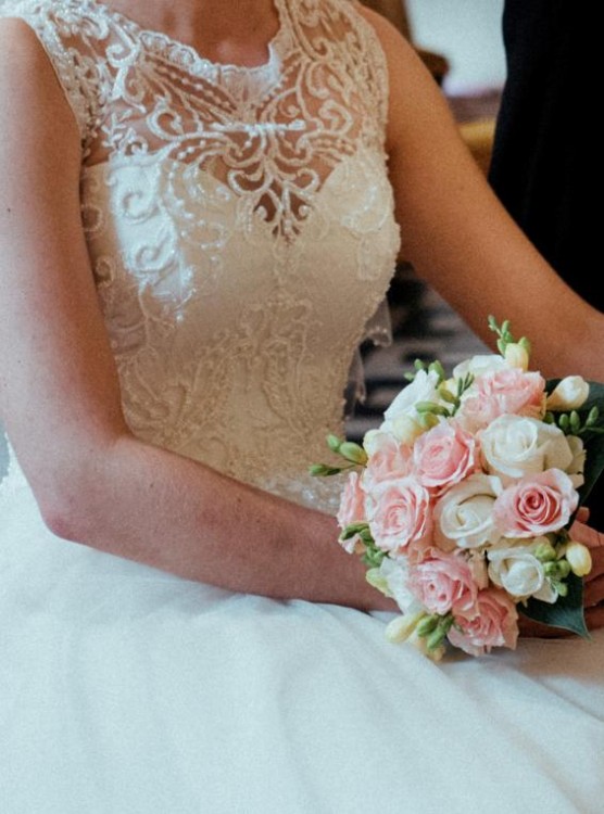 Przepiękna suknia ślubna, w kolorze ecru. Rozmiar 36/38.