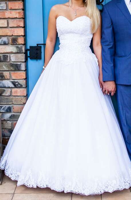 Zakupiona w salonie sukien ślubnych - ubrana raz, nie pożyczana.
