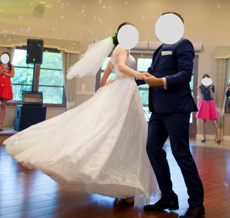 Rozmiar 36-38 (możliwość regulacji), wszyty biustonosz, wzrost 175 + obcas 7. Suknia jest po dokładnym czyszczeniu (założona tylko dwa razy: ślub i sesja). W zestawie halka na kole.