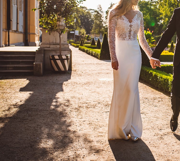 Suknia kupiona w lipcu 2017 r. w salonie sukni ślubnych Madonna w Warszawie. Tam też była uprana, na co mam paragon. Jest jak nowa! Do sukni dołączam śliczny długi welon obszyty koronką. Suknia jest w rozmiarze s/m, szyta na długość ok 173 cm + 8 cm szpilka i podkreślam - jest w idealnym stanie.