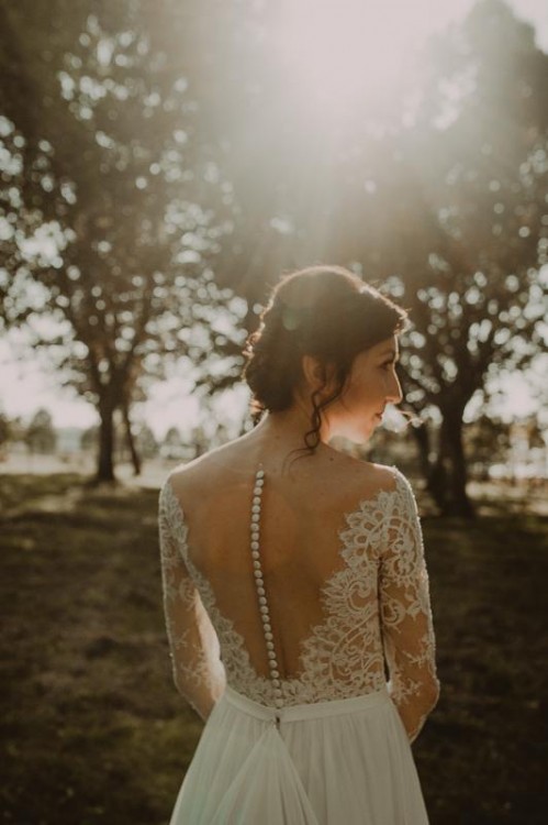 Góra koronkowa z rękawami zapinanymi na guziczki. Bardzo efektowny tył na cielistej siateczce.