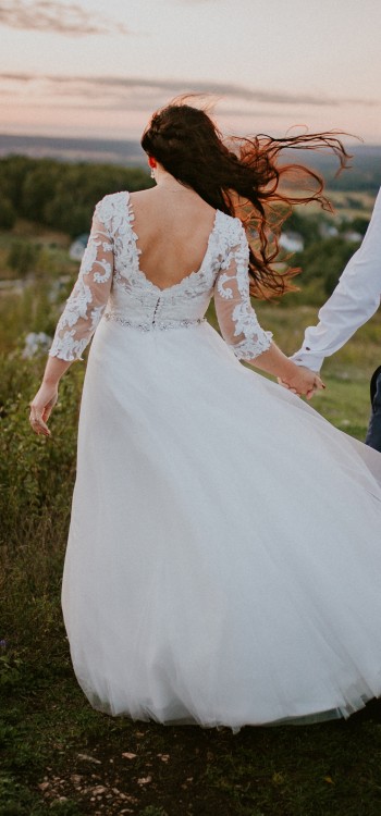 Romantyczna suknia ślubna z rękawem z koronki 2017