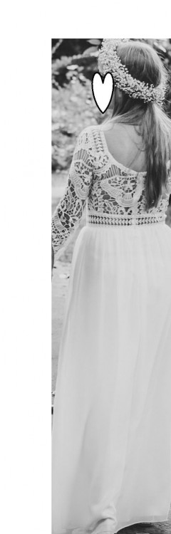 Dół to delikatny, lejący się materiał przypominający mgiełkę. Niewidoczność bielizna zapewnia (naturalna!) i niesamowicie miła w dotyku biała tkanina stanowiąca drugą warstwę dołu sukienki.
