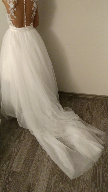 Do sukni dodatkowo w cenę wliczone jest pareo - dzięki czemu możemy mieć suknię i długą i krótką. Pareo może nam posłużyć jako długa spódnica podczas ceremonii zaślubin, a w trakcie pierwszego tańca pozbywamy się jej wprawiając gości w osłupienie! :) Pareo ma również łatwo odpinany i zapinany tren.
