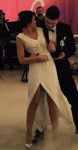 Wyjątkowa suknia ślubna szyta na wymiar (salon sukni Adria) rozmiar 34/36 dopasowana do wzrostu 165cm + obcas.