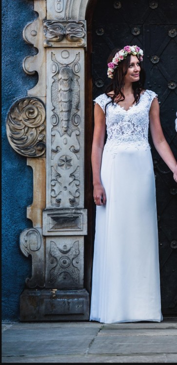 Suknia jest bardzo lekka i wygodna. Stan idealny, brak uszkodzeń, suknia po profesjonalnym czyszczeniu.